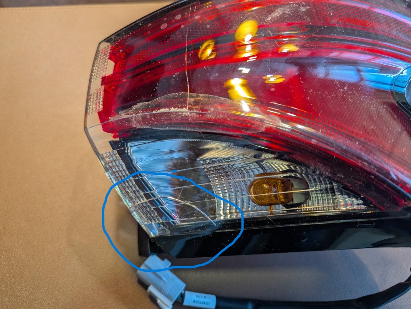 В лівому ліхтарі відламане кріплення, в правому тріснутий пластик.