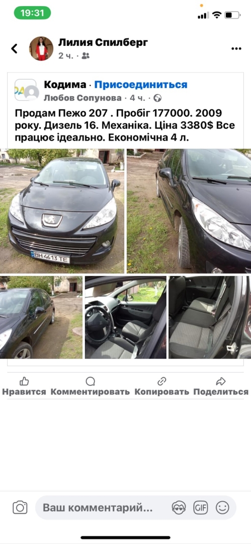 Продам Пежо 207. 2009 року. Механіка. Дизель 1.6 Пробіг 185.Все працює ідеально. Економічна 3 л.на 100 км. М. Кодима. Подільський район. Т. 096 437 19 58